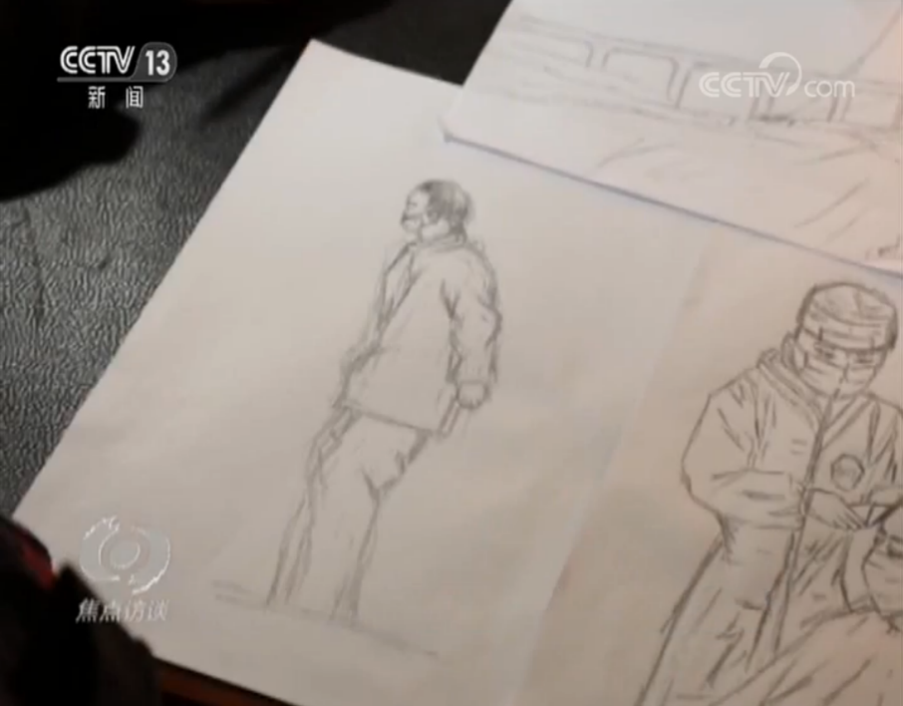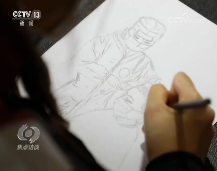 在孟凡瑩的畫里,不僅有與她一起并肩戰斗的同事,還有一位她并不熟悉的人,“他是酒店的一個工作人員,每天都在陪著我們。”因為記不清這位酒店工作人員的長相,孟凡瑩只畫出了一個側影。