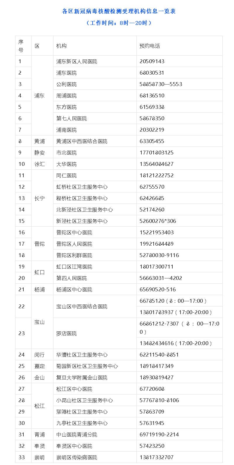 記者從上海市衛(wèi)健委獲悉,為支持企事業(yè)單位和學(xué)校復(fù)工復(fù)產(chǎn)復(fù)學(xué),滿足社會需求,上海市單位或個人可按照自愿自費(fèi)原則,在以下機(jī)構(gòu)預(yù)約開展新冠病毒核酸檢測。上海市衛(wèi)生健康委將對相關(guān)檢測機(jī)構(gòu)加強(qiáng)監(jiān)督和指導(dǎo)。(總臺央視記者? 陸學(xué)賢)