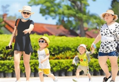 據文化和旅游部的統計數據,5月1日至5日,全國共接待國內游客1.15億人次,實現國內旅游收入475.6億元。圖為5月5日,家長帶孩子在海南三亞南山文化旅游區游覽。陳文武攝(人民視覺)