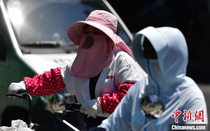 圖為福州市民烈日下“全副捂裝”出行。 張斌 攝