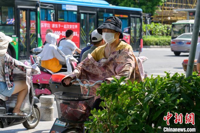 資料圖:7月13日福州民眾出行“全副武裝”抵御烈日。 李南軒 攝