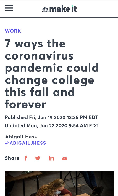 △CNBC報道《新冠肺炎疫情在今年秋天甚至永遠改變大學的學習生活》