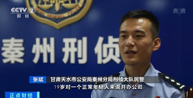 甘肅天水市公安局秦州分局刑偵大隊民警 張斌:對一個正常年輕人來說,19歲開辦公司,而且每筆進賬均為大筆金額,成百萬、上千萬,是不符合邏輯的。
