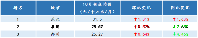 從環(huán)比上漲城市來看,本月租金環(huán)比上漲的TOP3城市為武漢、泉州、鄭州。疫情后,租賃市場(chǎng)受沖擊較大,其中武漢作為本次疫情的中心受影響嚴(yán)重,隨著疫情的影響逐步褪去,租賃市場(chǎng)活躍度逐漸提升。