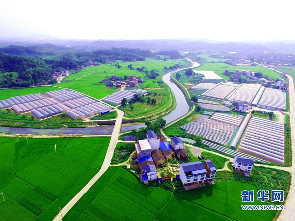 ??? 楊邊村以入股分紅、租賃等方式流轉(zhuǎn)土地承包經(jīng)營(yíng)權(quán),引進(jìn)福建省石壁現(xiàn)代農(nóng)業(yè)有限公司建設(shè)現(xiàn)代農(nóng)業(yè)觀光園,種植哈密瓜、草莓、葡萄等果樹作物1000余畝。圖為航拍楊邊村現(xiàn)代農(nóng)業(yè)觀光園。(王雄 林楷煜 攝)