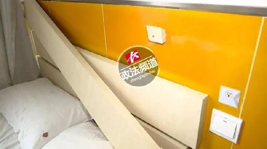 99連鎖旅館的工作人員介紹,這種木板,在每個床頭有三塊,每塊長約1.5米,掛在床頭是為了起到裝飾作用。
