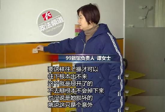 記者發現,這塊裝飾木板用小拇指就能移動,這樣的設計顯然存在安全隱患。由于協商難達一致,1月5日,夏女士和朋友再次來到了這家酒店。