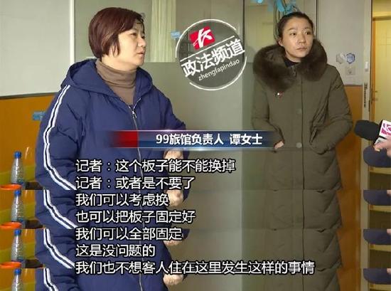 為進一步核實情況,記者來到了旅館的其他房間,發現木板的松動并非個別現象,幾乎個個房間都有,只是松動的程度不一。對于這種倒鉤式裝飾木板存在的隱患,酒店方承諾,將全面翻修。