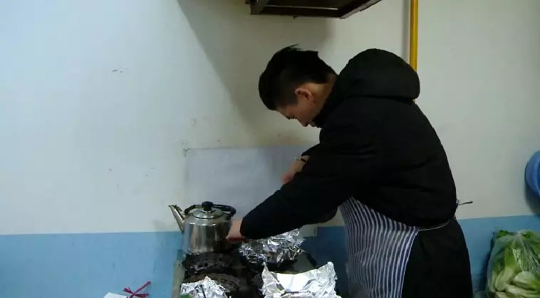 這位正在做花甲粉,高大帥氣的小伙就是歇業告示的主人。小伙子姓胡,身高一米九二,來自湖北天門。小胡說,他是年初五晚上回來的時候才看到告示留言的。
