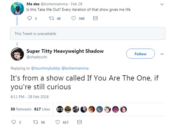 記者試圖登錄報道中提到的那條把《非誠勿擾》截圖搬上推特的熱門推文,但發現該頁面已經打不開了。該名來自倫敦的博主Bobby Sun的頁面則顯示,該用戶不存在。