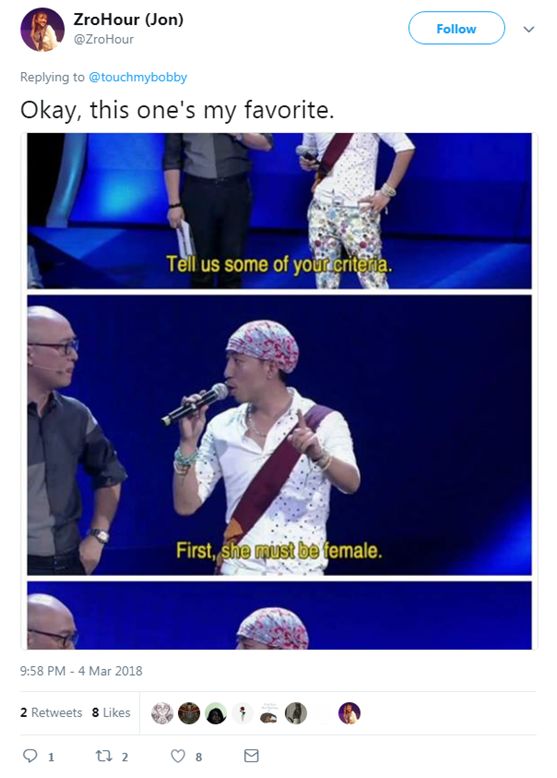 比如這位小哥說的:我的理想型是“性別女,愛好男”。