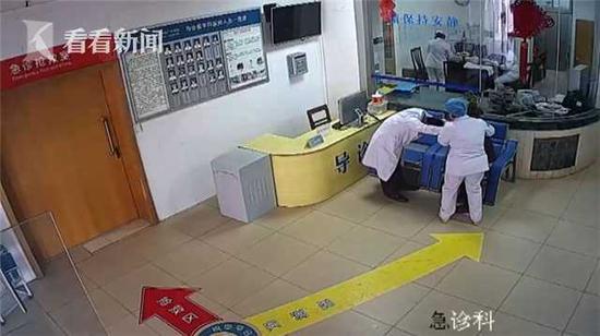 醫(yī)院的監(jiān)控畫面顯示,一位老人在女兒的攙扶下,來到急診科搶救室的休息區(qū)坐下。醫(yī)生來了之后與老人攀談了幾句,老人突然起身,給醫(yī)生鞠躬,醫(yī)生連忙鞠躬回謝。