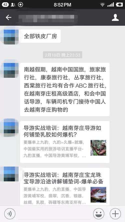 微信公眾號(hào)“九豹直播商城”收費(fèi)向中國(guó)導(dǎo)游傳授增加游客在購(gòu)物店消費(fèi)經(jīng)驗(yàn)。里面的“知名講師”李某同時(shí)也是越南芽莊珠寶、乳膠墊購(gòu)物店的經(jīng)理。通過(guò)暗訪,界面新聞新聞?dòng)浾吡私獾剑谠侥献鋈槟z購(gòu)物店和翡翠購(gòu)物店,分別能實(shí)現(xiàn)10倍和30倍的利潤(rùn)。
