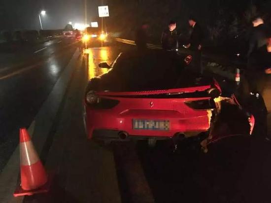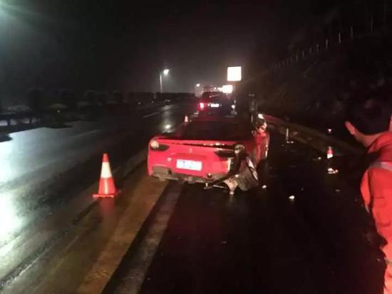 下午6點(diǎn)左右,在上三高速剛過新昌服務(wù)區(qū)5公里的地方,法拉利意外爆胎,車子失控,猛地撞向中央護(hù)欄。