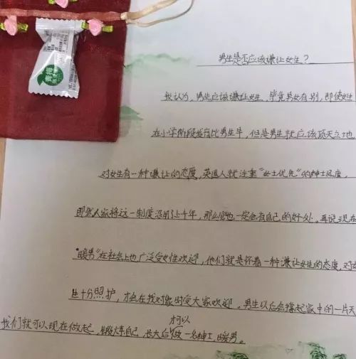 我覺(jué)得現(xiàn)在的女孩成熟比男孩早,各方面也不比男孩弱,不用特意謙讓女孩。優(yōu)秀的女孩都是靠自己的才華,來(lái)贏得大家的尊重及喝彩。