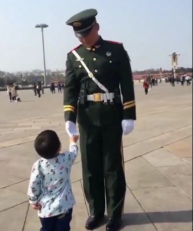 3歲寶寶向武警戰士敬禮 戰士一個舉動讓人動容