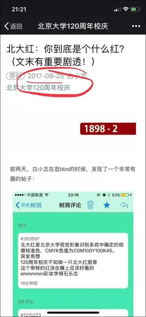 關于在北大校慶時將校徽的顏色做成口紅的創意,早在去年9月的時候就已經在微信公號“北京大學120周年校慶”上發布過了。