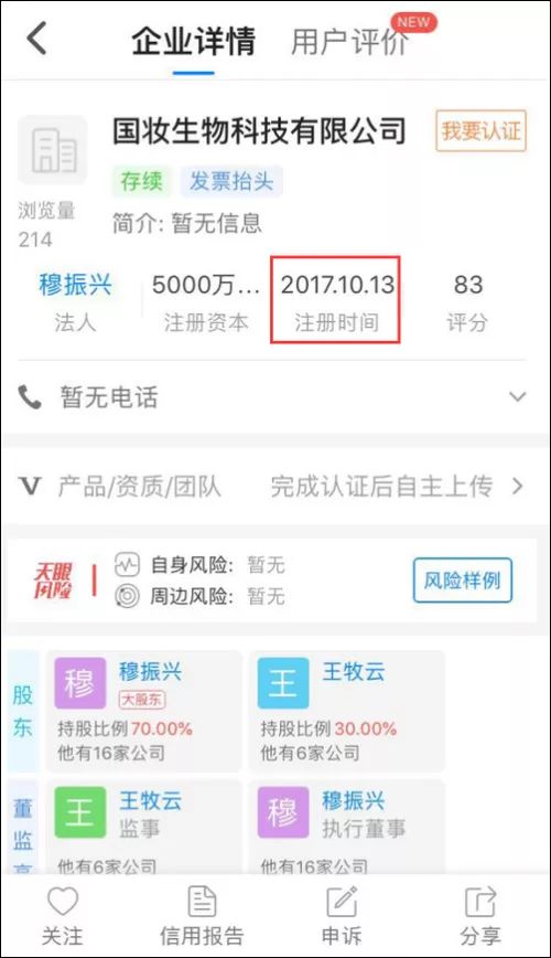 請注意,這家公司是去年10月注冊的,我很懷疑這樣的公司是否具備生產規范化妝品的能力。