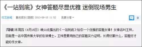 王梓的本科和研究生確實是在北大讀的,但博士學歷卻是在中傳,2013年她參加《一站到底》時,就能搜到軟文。