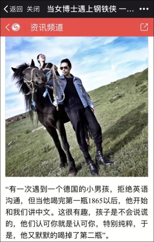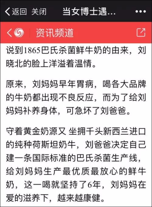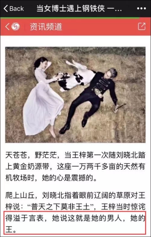 網友們搜到了去年7月的一篇軟文,《當女博士遇上鋼鐵俠 一杯牛奶的堅守 兩個人的執著》,文風比賣口紅的文章還有意思。