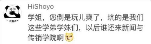 評論里聚集了一大票焦慮的北大學弟學妹:學姐您倒是玩兒爽了,坑的是我們啊,以后誰還來新聞與傳銷學院啊!
