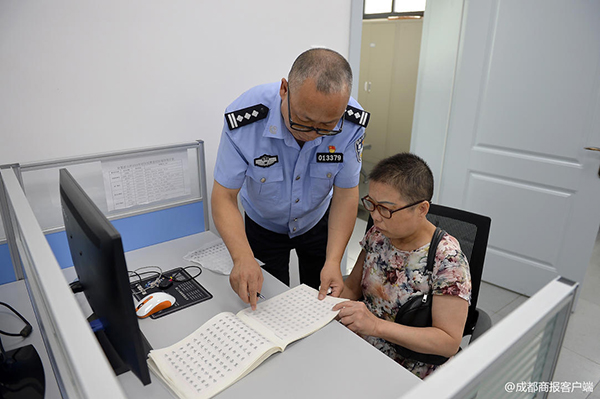 無奈之下,吳鳳權找到了派出所領導,表達了想帶著妻子上班的訴求。這位基層老民警的遭遇也得到了派出所上下的理解。從今年3月初開始,每天老吳就和妻子一同出門,他在柜臺幫群眾辦證,派出所就將他的妻子安排在了大廳一角的一間辦公室里。