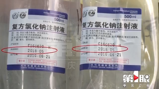楊大爺的家人朱先生,隨后連夜將老人轉到了合川區中西醫結合醫院,一路上都掛著衛生院的輸液瓶。詢問情況后,這家醫院的護士發現,楊大爺注射的復方氯化鈉注射液,已經過期兩個月了。