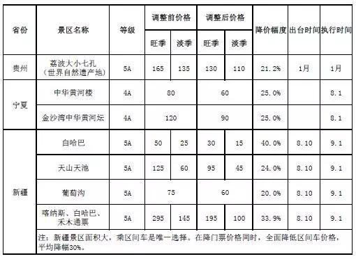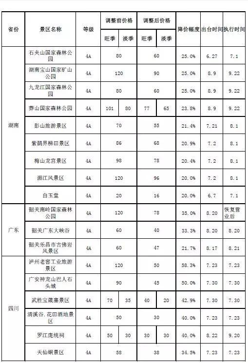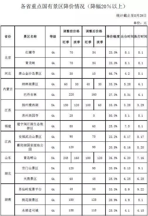 各地重點(diǎn)國有景區(qū)降價(jià)清單