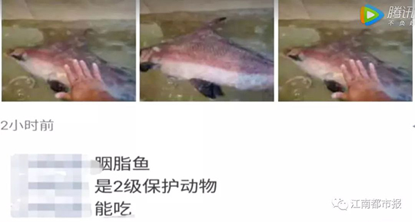不少網友認出,這是國家二級保護動物胭脂魚。但不想該男子竟然在知道的情況下,還公然回懟:“能吃!”