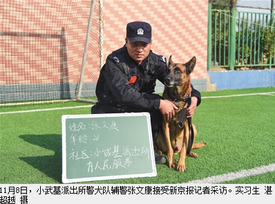 于永江說,小武基派出所2010年成立時(shí),張文康就在這里擔(dān)任輔警,他心細(xì)、熱心,民警們外出巡邏也都喜歡帶著他。后來派出所要組建警犬隊(duì),馴犬員要接受公安部警犬培訓(xùn)基地的專業(yè)培訓(xùn),馴犬并攜犬巡邏。于是所里就找他談話,詢問他的意見。