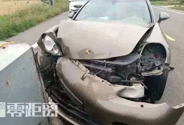 這起事故發生在今年5月29號,一輛保時捷轎車撞上了安徽省省道收費站附近的限寬石墩,車頭損毀嚴重,氣囊彈開。