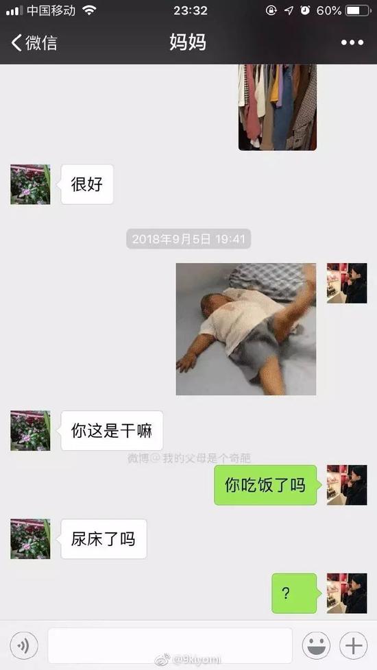 有次我給媽媽發(fā)了個小胖孩尿床的表情