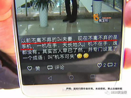餐廳主管陳某某今年51歲,離異單身,在微信朋友圈里發(fā)過這樣的文字,“以前不離不棄的叫夫妻,現(xiàn)在不離不棄的是手機。”小柳和鄧女士最擔心的是,不知道對方到底拍了多少視頻,有沒有流到網(wǎng)絡上去。