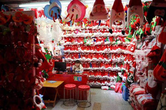 為了及時能收到可在本國銷售的圣誕節商品,來自世界各地的圣誕進貨商們,每年都要提前幾個月來義烏“朝圣”。他們的第一站通常是義烏國際商貿城。