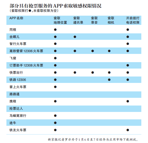 15個搶票APP13個索取敏感權限