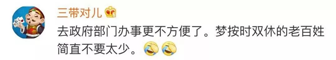 但也有網友認為:這樣辦事就更不方便了,并自嘲“連雙休都沒有”