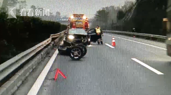 高速公路執(zhí)法人員劉斌:“車(chē)輛后橋全部脫落,水箱和前保險(xiǎn)杠也脫落。”