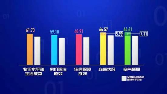 大調(diào)查發(fā)現(xiàn),重慶百姓對于物價(jià)水平和生活成本、房價(jià)調(diào)控成效、住房保障成效、交通狀況、空氣質(zhì)量的滿意度遠(yuǎn)高于省會(huì)城市和直轄市的平均水平。從具體分值來看,空氣質(zhì)量高出平均分7.11,交通狀況高出5.99。
