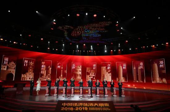 除“中國美好生活指數”外,晚會還發布了2018-2019年度美好生活指數最高的10個省會城市和直轄市榜單——南京、長沙、合肥、廣州、昆明、呼和浩特、重慶、海口、鄭州、銀川。