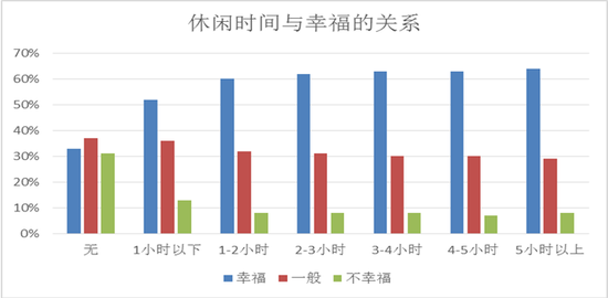 大調查發現,從整體趨勢上看,休閑時間越長,人們的幸福感也越強;然而當休閑時間超過2小時以后,受訪者對幸福的感受不再因為休閑時間的增加而增加,適當的忙碌,讓生活充滿節奏感,幸福也來得更穩健。