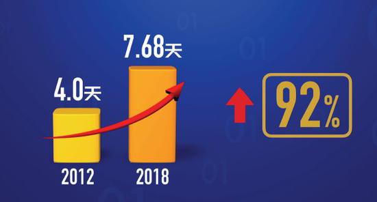 2018年,隨著帶薪休假制度的逐步落實,中國居民休閑時間也得到了保障。大調查與數據聯盟伙伴中國社會科學院財經戰略研究院聯合課題組的測算發現,2018年中國人平均帶薪休假天數已經達到了7.68天,比上一次調查(2012年調查結果4.0天)大幅提高了92%。