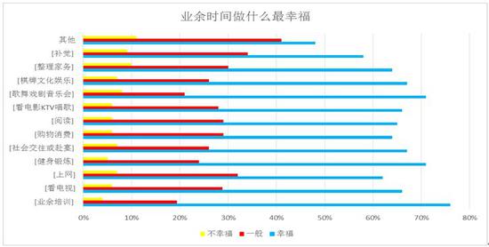 休閑時間做什么最能提升幸福感呢?大調查結果顯示,休閑時間用來參加業余培訓、健身鍛煉和欣賞歌舞、戲劇、音樂會的受訪者幸福感相對更高。身體健康,精神充實,幸福的日子一天比一天多。