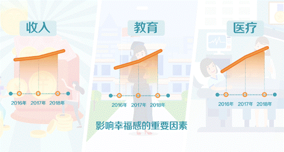 收入、教育、醫療滿意度提升,增強中國人整體幸福感整體趨勢來看,從2006年開始,收入、教育、醫療問題,就一直是影響中國人幸福感的最重要原因,過去三年,這三項指標的滿意度出現了不同程度的提高,提升了中國人的整體幸福感。