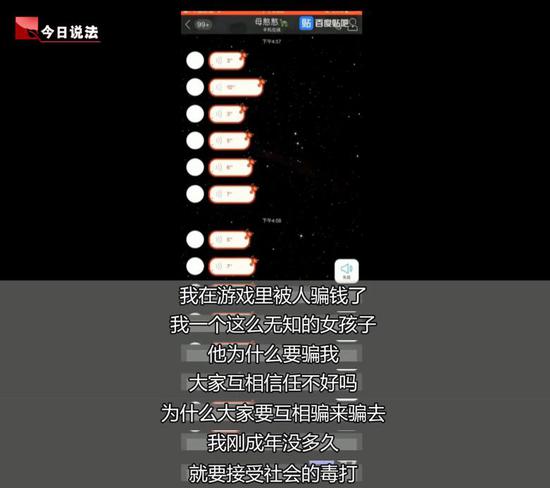 視頻大概內容是這樣的,被騙玩家先是向其師傅哭訴,泣不成聲說道:“我一個這么無知的女孩,剛成年沒多久,就要接受社會的毒打。”