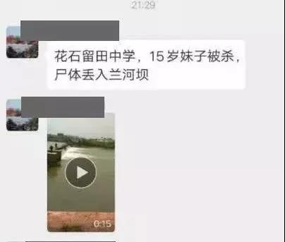 正在警方緊密調查死者身份和死亡原因之時,8日晚上,有微信群便在傳播:“花石留田中學,15歲妹子被殺,尸體丟入蘭河壩”。