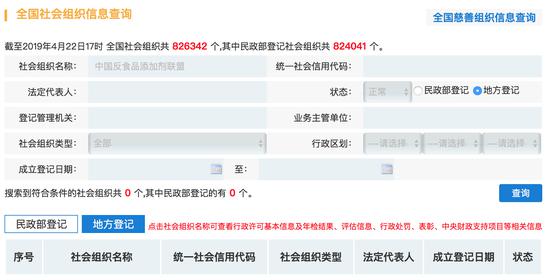 同日,在2019年國際食品安全與健康大會上,大會主持人、國際食品科學院院士饒平凡教授指出,“中國反食品添加劑聯盟”是在中國香港注冊的一個組織,在中國內地的活動涉及違規。“這一主辦單位的身份不明,法律地位不明。”饒平凡表示,活動的另外一個協辦單位“聯合國民生事務所”為虛構的組織,并不存在。而新京報記者通過民政部“全國社會組織信息查詢”檢索發現,并沒有任何關于“中國反食品添加劑聯盟”的信息。