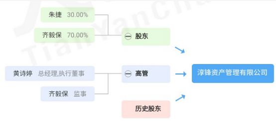 從股權關系來看,淳鋒資產系朱捷、齊毅保兩名自然人股東出資設立,齊毅保持70%股份,朱捷持股30%。齊毅保系廣東淳鋒律師事務所的主任,朱捷則為該律所的執業律師。不過,據公司員工介紹,淳鋒資產只是朱捷律師在外面自己開的公司,和律所沒有關系;齊毅保只是公司合伙人,是資方,不參與日常經營。