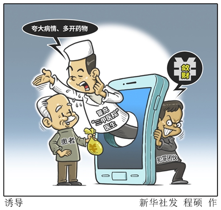 “新華視點(diǎn)”記者追蹤調(diào)查發(fā)現(xiàn),該犯罪團(tuán)伙把普通民營醫(yī)院包裝成擁有“名醫(yī)”的“三甲醫(yī)院”,通過搜索競價排名尋找病患對象,再雇用沒有行醫(yī)資質(zhì)的“醫(yī)生”誘導(dǎo)其接受高收費(fèi)治療,甚至開出許多對病情毫無作用的藥物,從而達(dá)到斂財?shù)哪康摹?/p>
