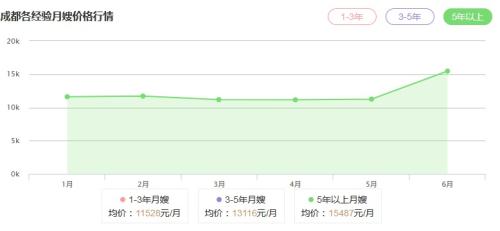 某月嫂中介平臺公開的成都月嫂價格排行。從表中可看出,擁有五年以上從業經驗的月嫂,均價已超過15000元
