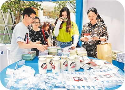 不久前,“大白兔”60周年快閃店亮相上海凱德晶萃廣場,吸引了不少市民游客前來打卡。快閃店不僅提供多種口味的大白兔奶茶,現(xiàn)場還有抱枕、香水、環(huán)保袋、文件夾等多款文創(chuàng)產(chǎn)品出售。圖為消費者在挑選商品。王 初攝(人民視覺)